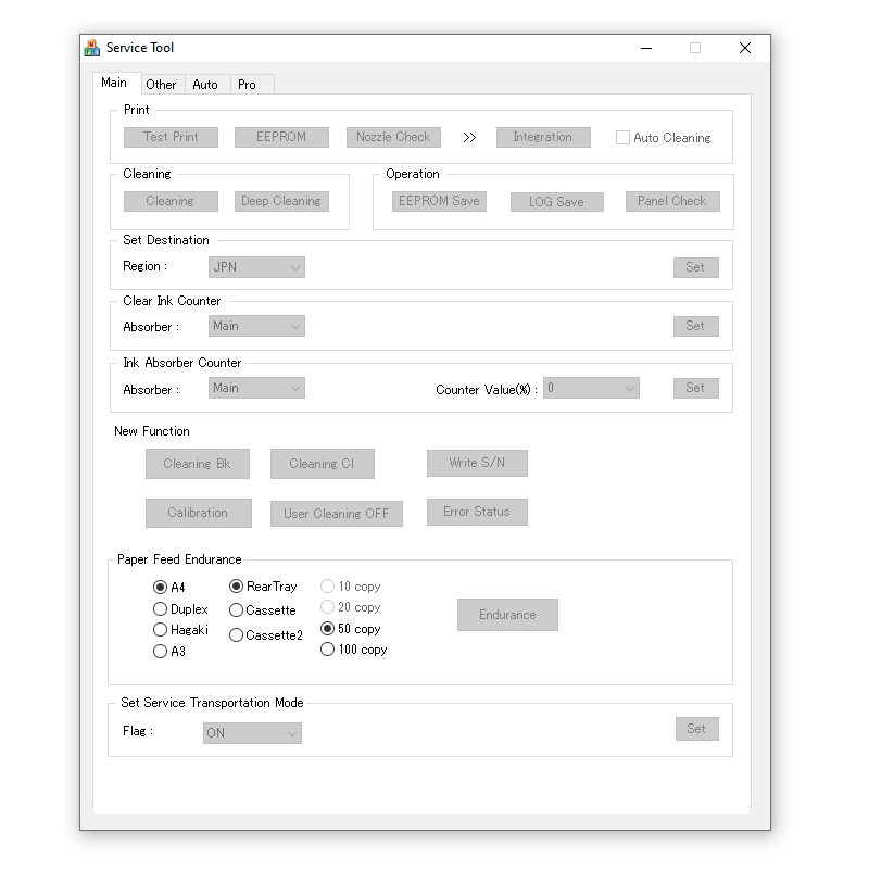 وقتی روی یک دکمه در نرم افزار Service Tool کلیک می‌شود، آن عملکرد اجرا می‌شود. در حالی که عملکرد انتخاب شده در حال اجرا است، تمام دکمه‌های ابزار سرویس کم‌نور یا غیرفعال می‌شوند. پس از پایان عملیات، پیام ” A function was finished ” ظاهر می‌شود و سایر عملکردها را می‌توان بعداً انتخاب کرد.
