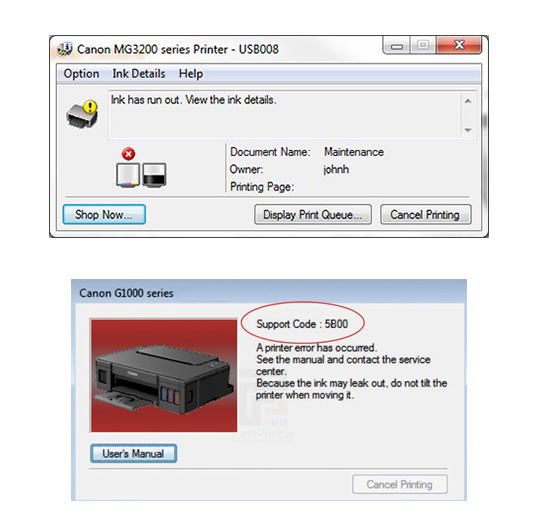 معنی کد خطایCanon Service Tool (کد خطا: 002، 005، 006، 007، 009 و غیره)